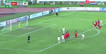 第90+2分钟,日本14号造点,亲自操刀主罚命中,日本2-1缅甸